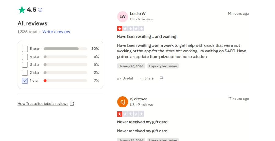 On Trustpilot, Prizeout.com holds an impressive 4.5 out of 5 stars, with many users praising how easy and fast the gift card redemption process is. Plenty of reviews mention smooth checkout experiences and quick delivery.